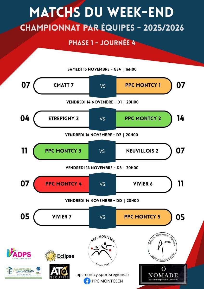 đ RĂ©sultats de la 4á” journĂ©e du championnat par Ă©quipes â Phase 1 (Saison 2025/2026) đ